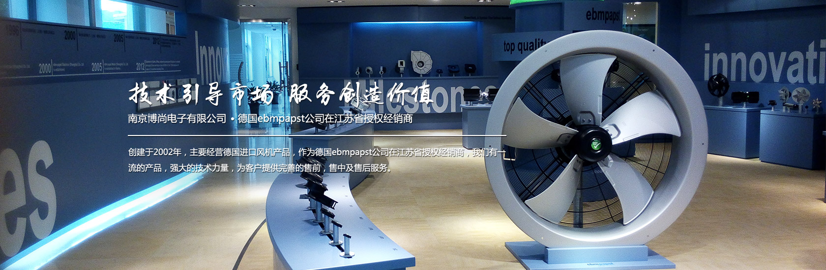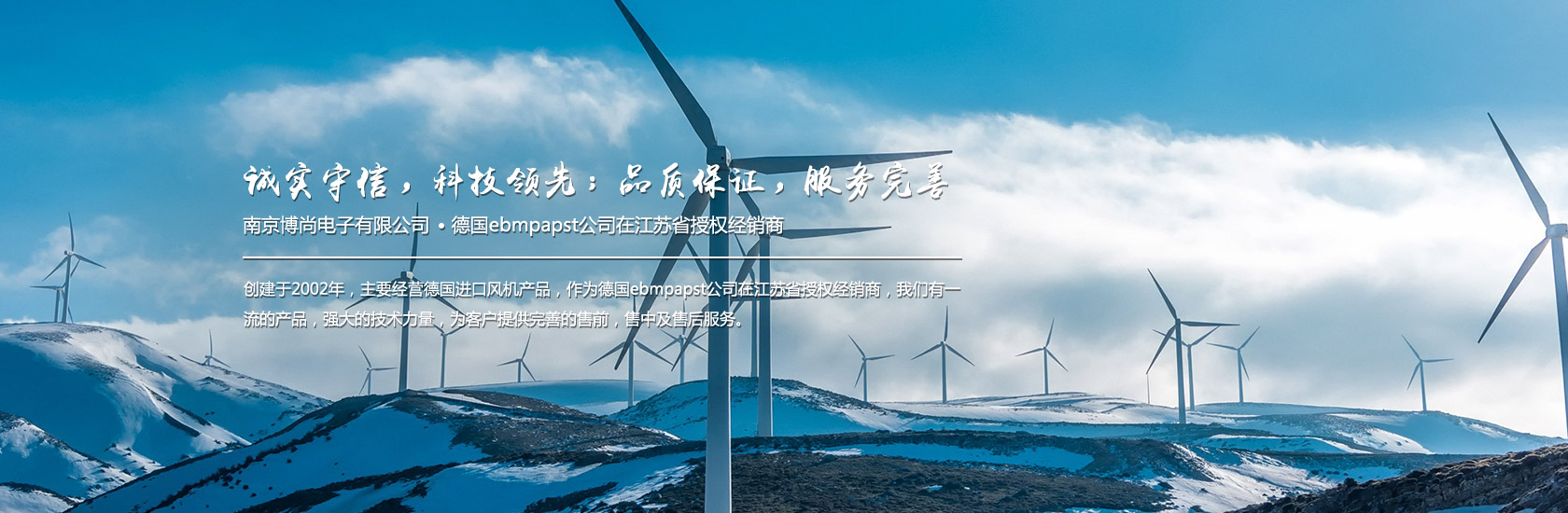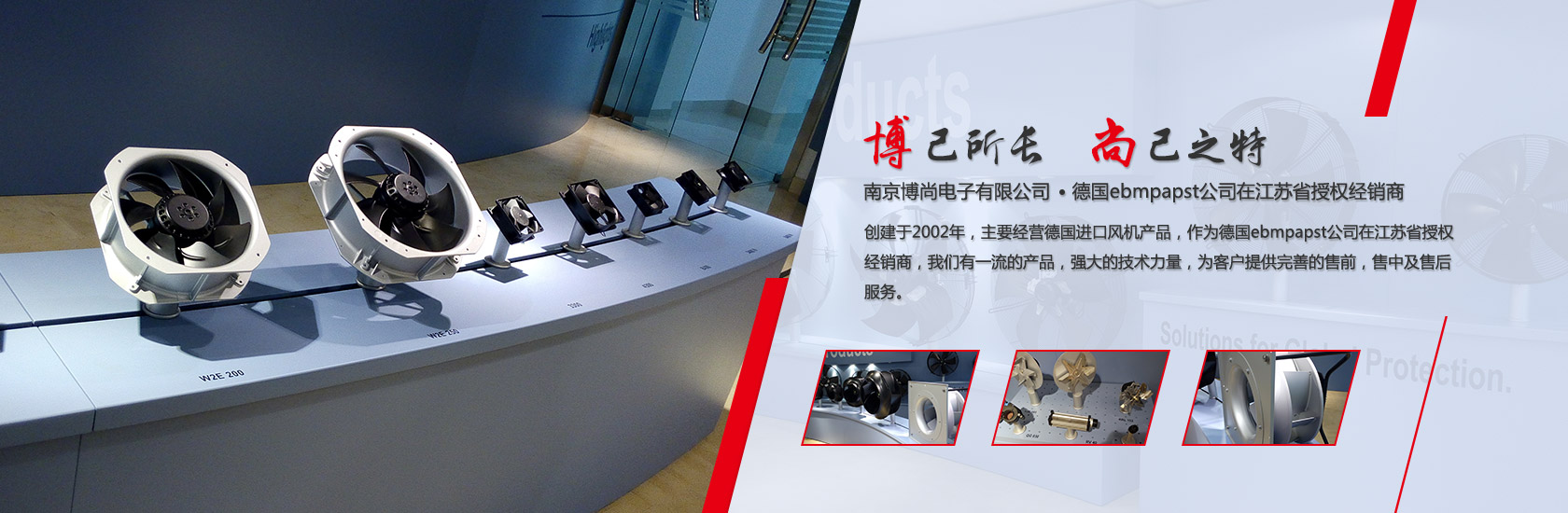 南京博尚電子有限公司創建于2002年,主要經營德國進口風機產品,作為德國ebmpapst公司在江蘇省授權經銷商,我們有一流的產品,強大的技術力量,為客戶提供完善的售前,售中及售后服務。